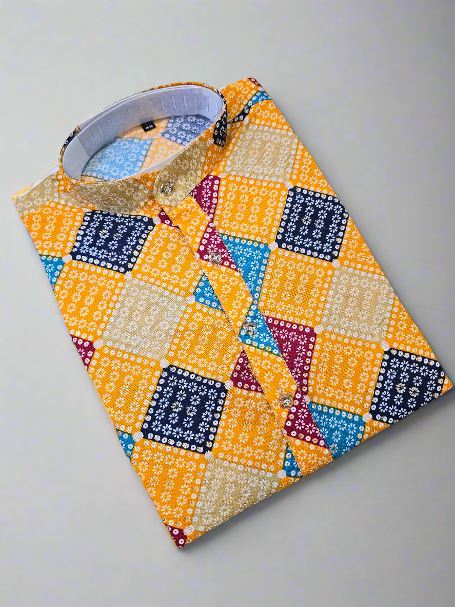 Step into timeless elegance with this beautifully crafted Bandhani kurta, made from a breathable blend of cotton and rayon for all-day comfort. Featuring traditional Bandhani prints combined with vibrant digital motifs, this kurta blends ethnic charm with a modern twist.